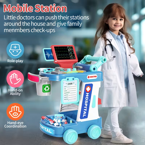 Doctor Game Medical Cart Set , Movable Doctor Toy Table with Stethoscope and Thermometer, Role Playing Doctor Nurse Kit, Various Medical Equipment Toys , Birthday, Thanksgiving and Christmas Gift2 sales