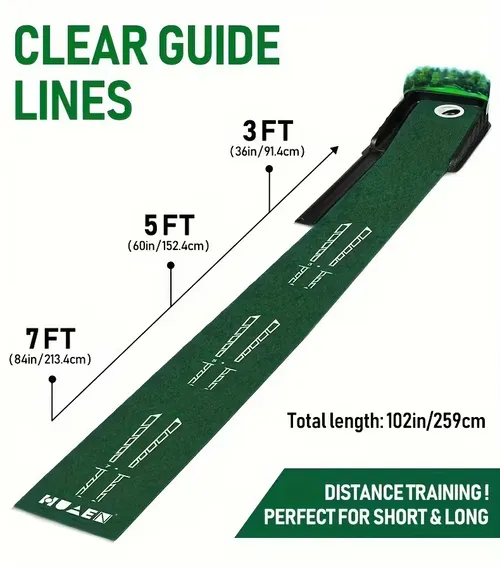 Indoor Golf Putting Mat with Auto-Ball Return & Behind-the-Hole Ball Collector - Putter Alignment Guides at 3, 5 & 7 Feet, Multidistance Practice, Smooth Surface, Practice Enthusiasts