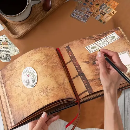 Our Adventure Book Travel Diary Photo Book,11.14x9.44inch 73 sheets146 pages Scrapbook, Photo Album,Retro Style Travel Souvenir, Vintage Guestbook DIY Anniversary Wedding Travel Writing Youngsters Friend Gift, Birthday Gifts for Women(Ball)